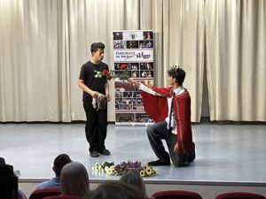 Proiectul de teatru realizat în colaborare cu elevi din orașul francez Angouleme a ajuns la o nouă etapă: după punerea în scenă a unei adaptări a cărții Micul prinț, de Antoine de Saint-Exupery în cursul anului școlar precedent, spectacol finalizat în Franța, a venit rândul nostru să fim gazde pentru a-l aduce pe scenă pe Făt-Frumos. Acest proiect presupune realizarea unui spectacol în care rolurile sunt împărțite între elevii francezi și cei români. După ce, în prealabil, rolurile fuseseră învățate de fiecare elev, a venit momentul (re)întâlnirii : francezii au venit la Turda. În cele trei zile dedicate repetițiilor s-a muncit foarte mult la armonizarea interpretării și a mișcării pe scenă, dar aveam deja experiența spectacolului precedent.
